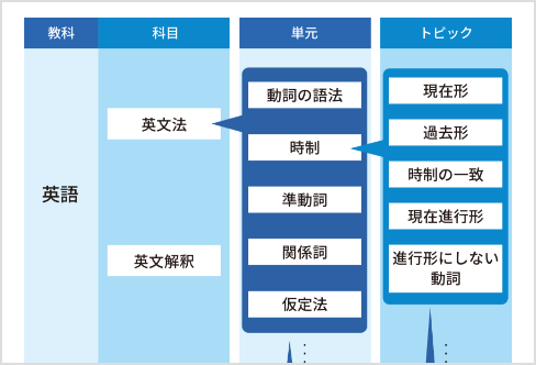 - 動詞の語法/時制/助動詞・受動態/仮定法/準動詞/関係詞/接続詞/比較/代名詞/名詞・冠詞/形容詞・副詞/前置詞/否定・倒置・語順・その他/英語の基本(中学分野の復習)